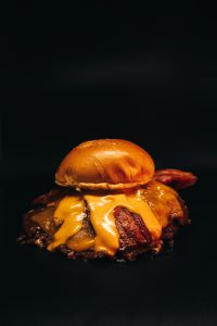 Doble smash de vaca, doble bacon crujiente, pan de patata, queso americano, salsa de queso applewood, pickle kรฉtchup y salsa secreta (no se puede desvelarโ€ฆ lo sentimos ๐Ÿ˜ˆ)
